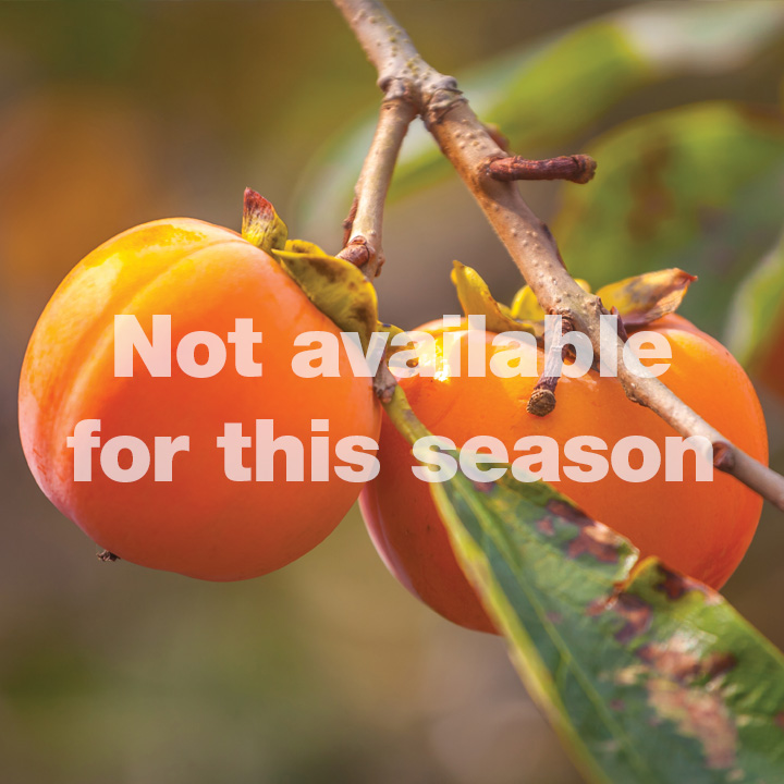 American persimmon trees are very attractive with an upright form and distinctive ‘alligator hide’ bark pattern. Waxy, blue-green droopy leaves turn a striking golden yellow in the fall with their orange, golf ball sized fruit which ripens very late, often hanging on the tree after the leaves drop. When fully ripe, persimmons are soft and honey-sweet with a dash of spice. The unusual, delectable flavour possibly explains the Latin name for persimmon which means ‘food of the gods’.