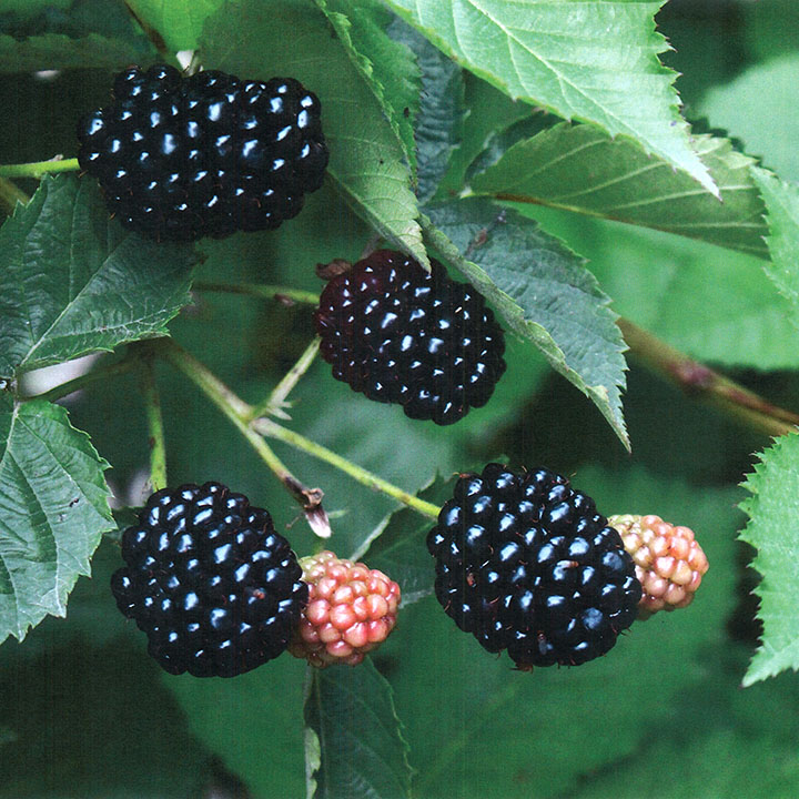 Although wild blackberries are common they tend to be small and seedy. Of the numerous cultivated varieties that have been developed, only a few will tolerate our Canadian winters. All blackberries adore intense sun, heat and humidity, so even though we offer the hardiest varieties, they desire a sunny site and will benefit from winter protection. Another thing to consider–the blackberry plant itself is actually a medicinal herb. The leaves and even the roots have proven to be very beneficial for treating a host of human ailments.