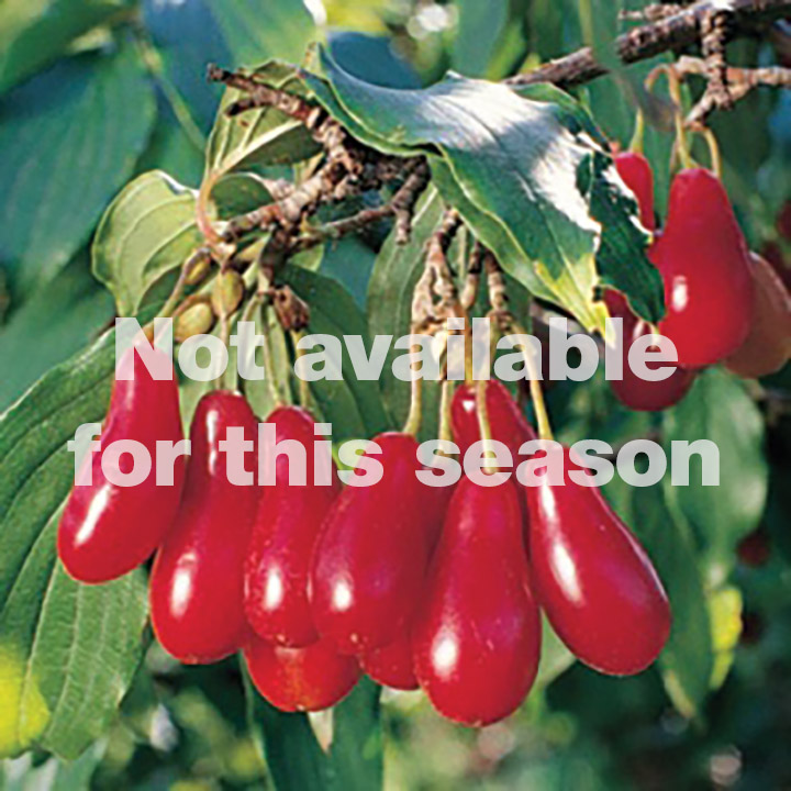 This is not a true cherry, belonging rather to the dogwood family. Elongated fire engine red fruits are considerably more tart than regular sour cherries, but can be used for sauces, preserves and syrups, or left for the birds to enjoy. The tree itself offers visual appeal throughout the seasons. Masses of golden yellow blossoms swath the branches for several weeks in early spring followed by satiny green leaves and the striking, glossy red fruit. This large shrub or low branched tree adapts easily to a wide range of conditions and can grow to 3 to 6 meters (10 or 20') depending on soil type or whether in shade or a sunny site.