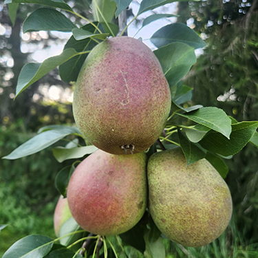 Similar to the well known Seckel or Sugar pear but in a larger, longer keeping fruit. Delectable, smooth, creamy flesh is super sweet and firm. Honey Sweet is hardy and resistant to fire blight and foliage diseases. It is one of the few pears that will set fruit without a pollenizer, but the fruit will be bigger if you have another variety nearby.